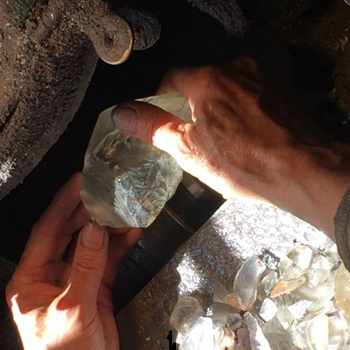 石が持つ特性(硬度、結晶の方向、不純物の有無など)を見極め適切な力加減で慎重に割ることで石の内部に隠された美しさを見つけ出します。