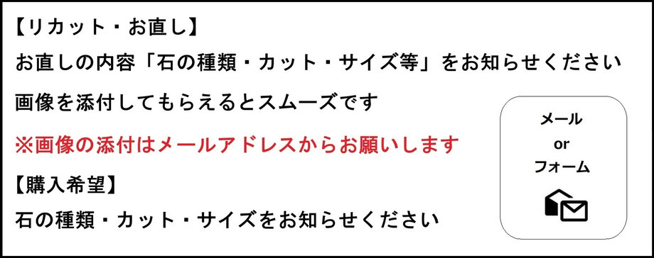 また、原石のような大きいサイズの石の加工は片手で持てる10cm程度のサイズまでとなります。